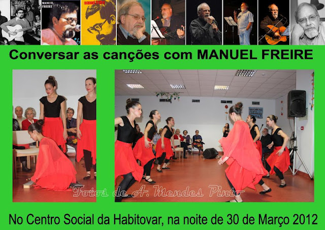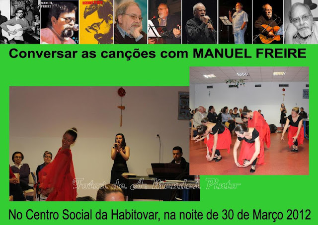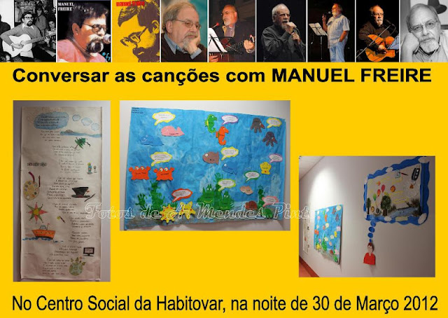 Apresentação de 21 Diapositivos de um PowerPoint, construído pelo autor deste Blogue, que, nesta noite de 30 de Março de 2012, mostrou um pouco do valioso percurso artístico de Manuel Freire e da sua intensa actividade junto das Comunidades, Associações e Colectividades.